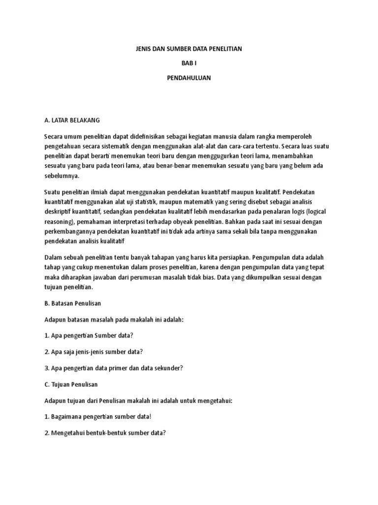 Data ini berfungsi untuk membantu anda sebagai peneliti dalam mencari . Sumber data terbagi menjadi dua yaitu data primer dan data sekunder. 82) data primer ialah data yang diperoleh atau . Dalam penelitian ini, jenis dan sumber data yang digunakan ialah: